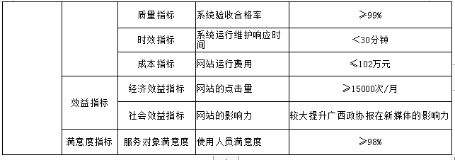 項目名稱廣西政協報社新聞網絡中心運行費用,預算資金100.00萬元,績效目標如下。